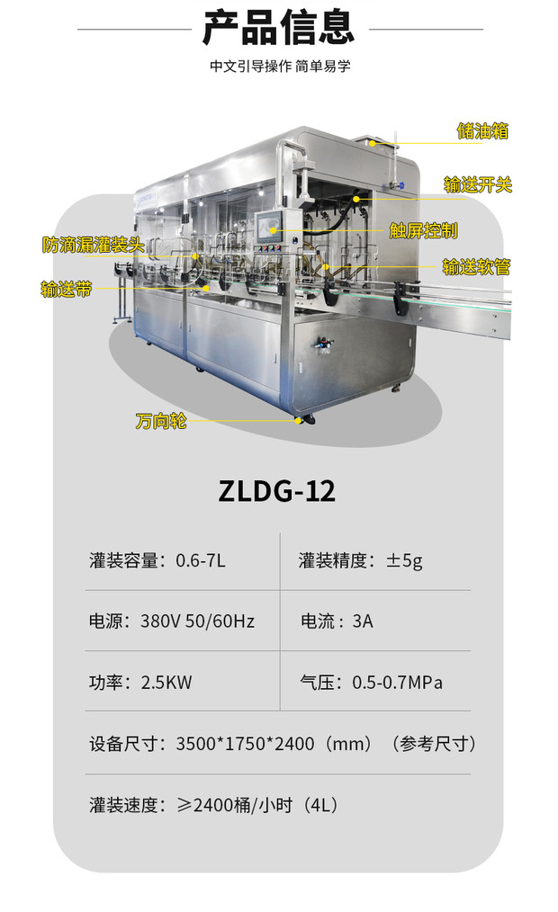 含高位罐,高頻多段灌裝速度隨意調(diào)整灌裝機操作程序優(yōu)化,可存儲40組以上的配方參數(shù)。